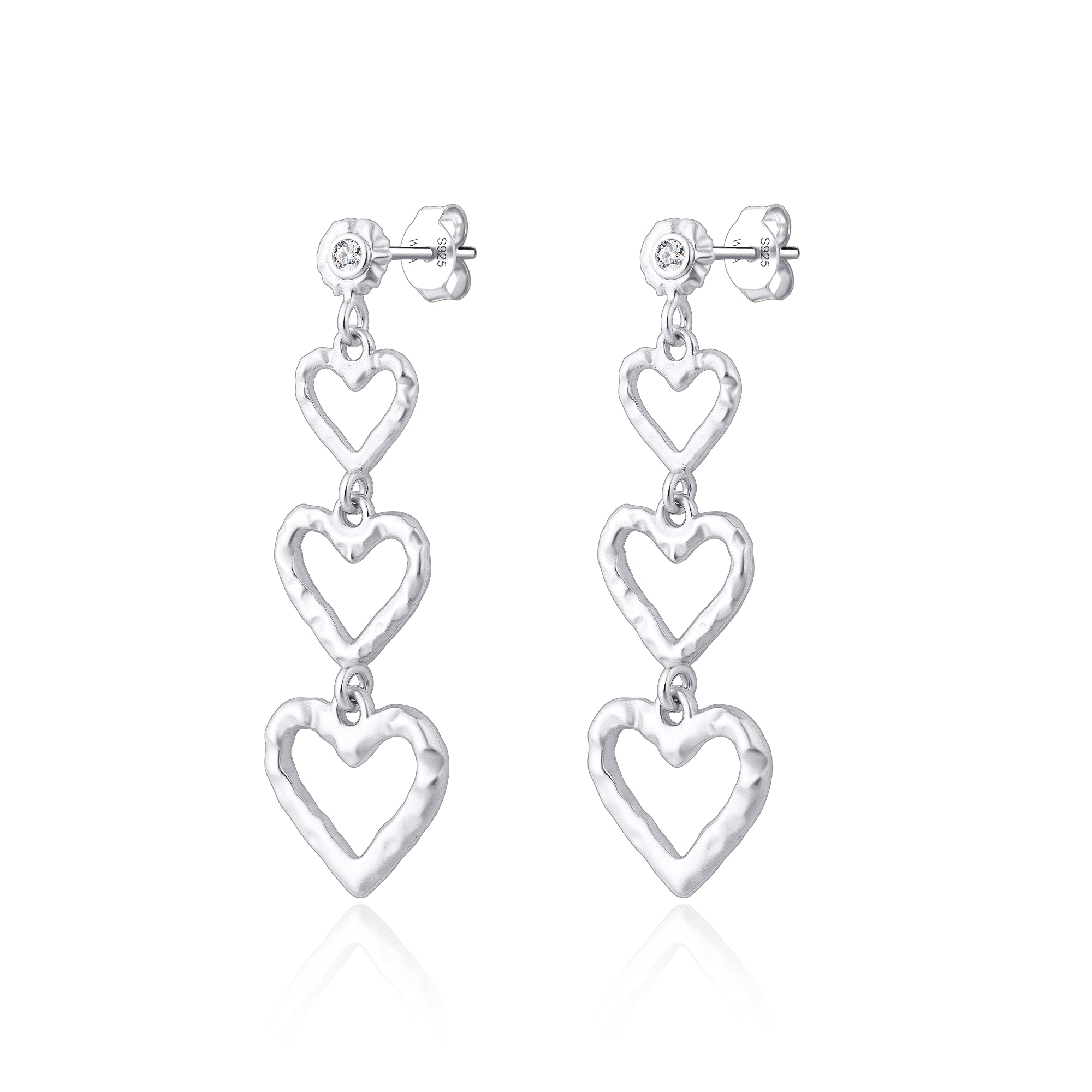 Frida øreringene er et par elegante og romantiske øreringe i sterlingsølv, pyntet med en funklende zirkonia sten og tre sammenhængende hjerter. Det bankede hjerte-design symboliserer kærlighed, nærvær og varme – et tidløst udtryk, der kan bæres til enhver lejlighed. Et smukt og iøjnefaldende design, der fanger lyset og tilfører et feminint touch til dit look. Perfekte både til hverdag og festlige øjeblikke.